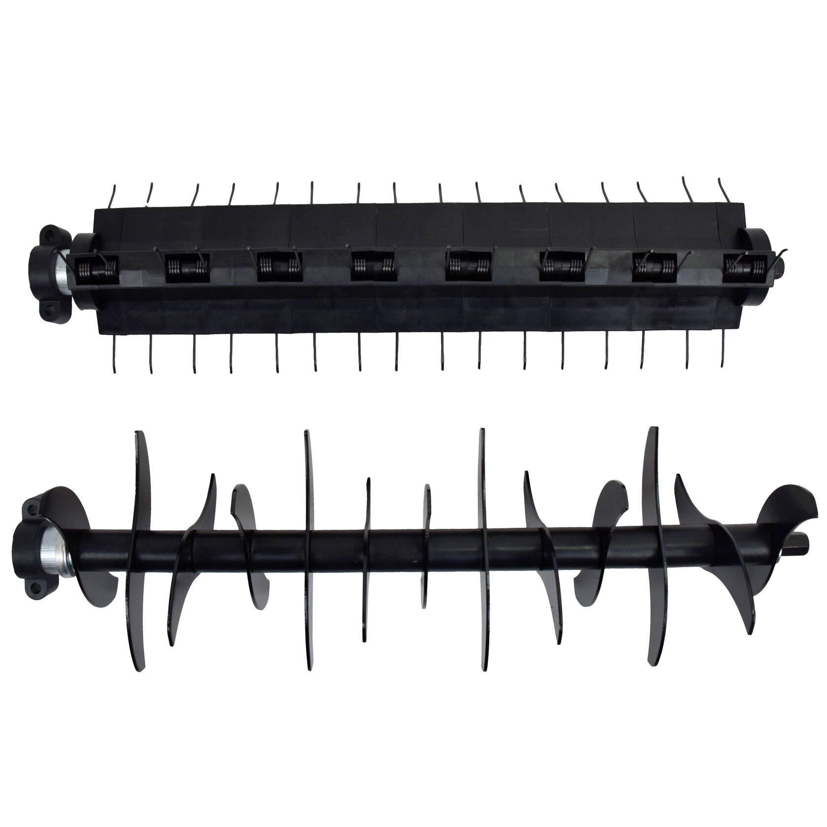 - 2 насадки (вал с 16-ю ножами (скарификатор) и вал с 24-мя пружинистыми спицами (аэратор)) входят в комплект;
