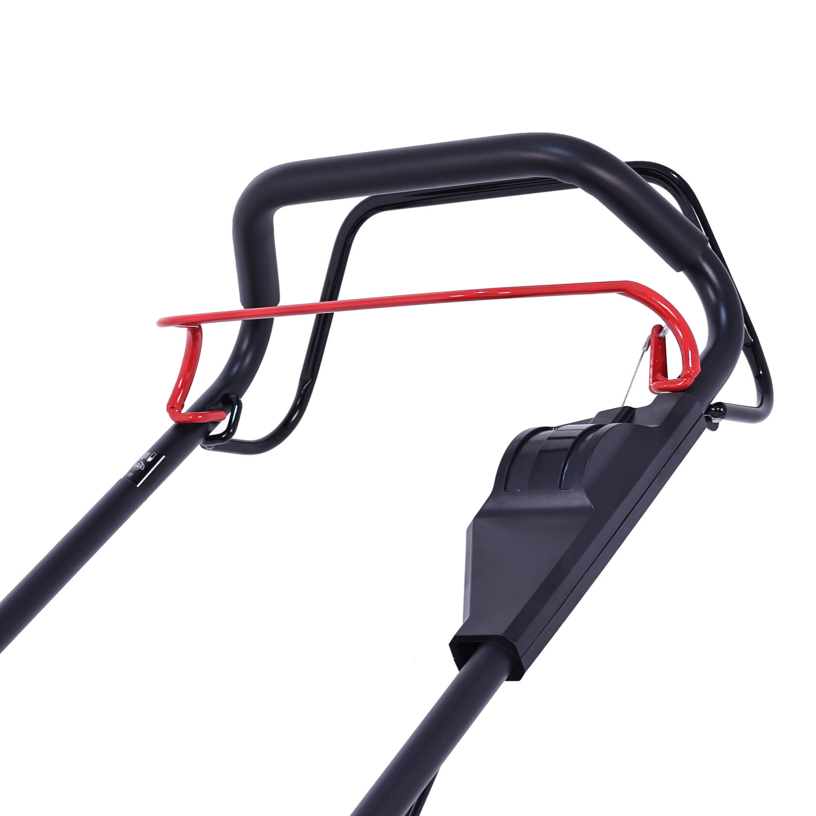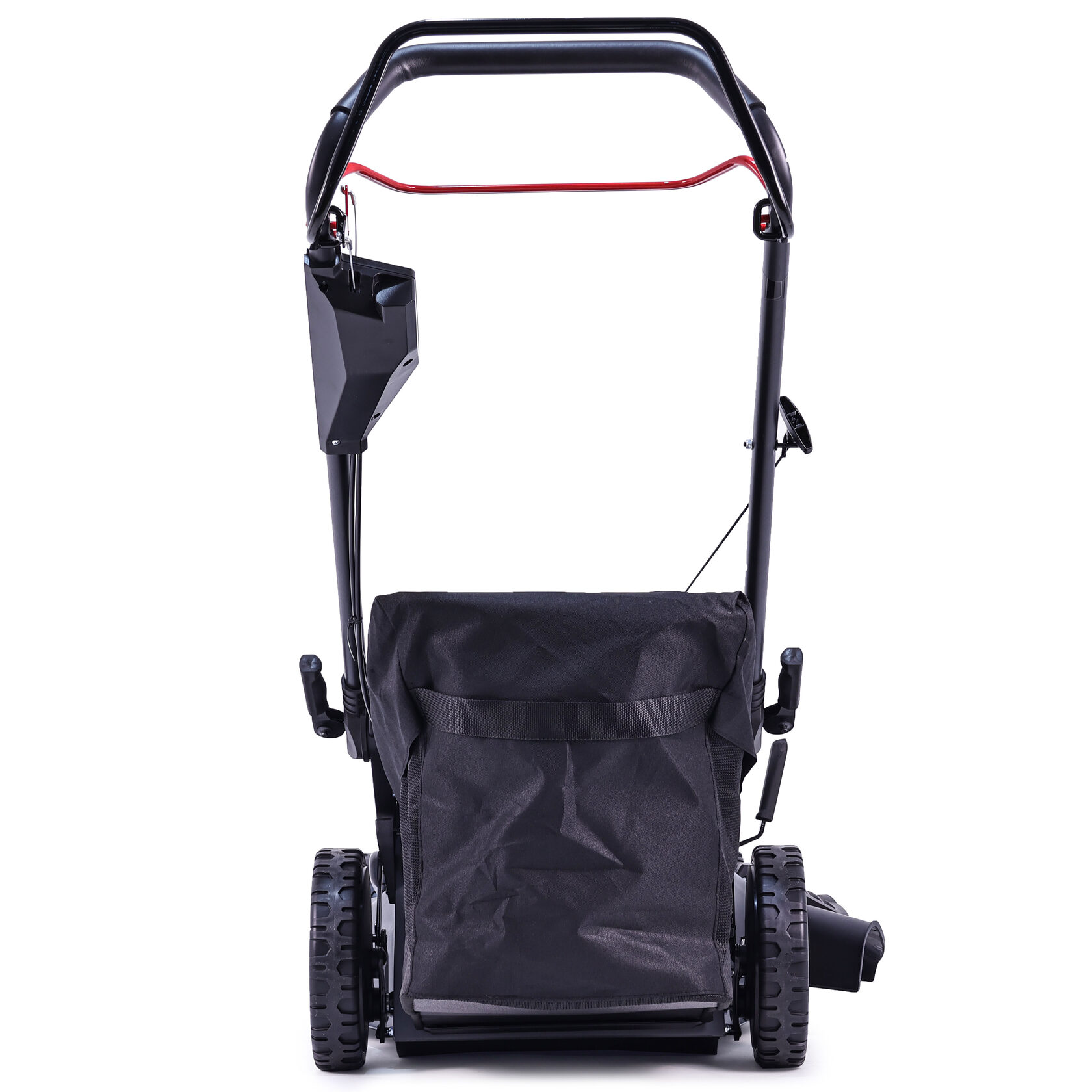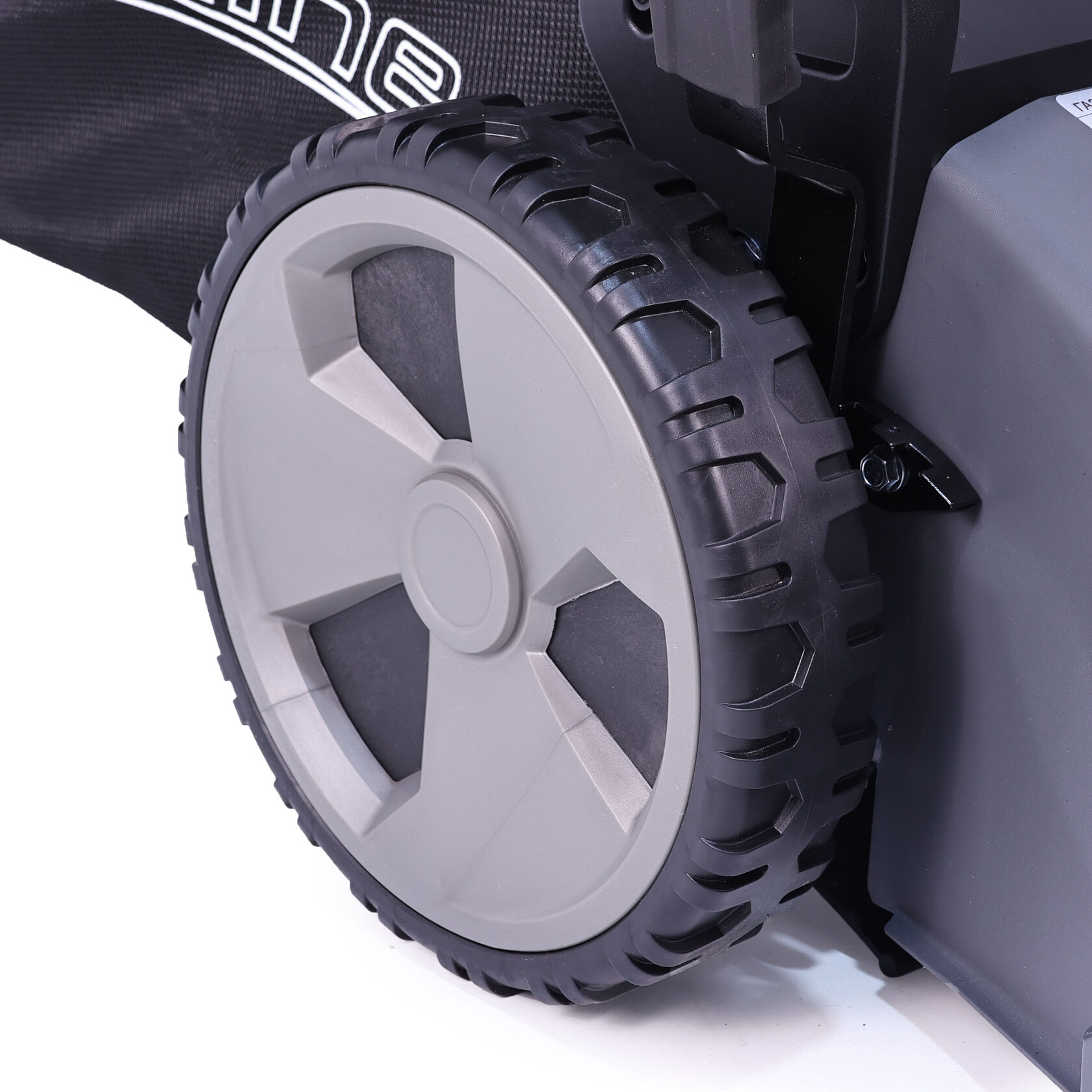 Металлический бампер, усиленные крепления рукояток, 7 положений высоты кошения, тканевый травосборник – вот несколько отличий, отличающих эту косилку от обычных моделей.