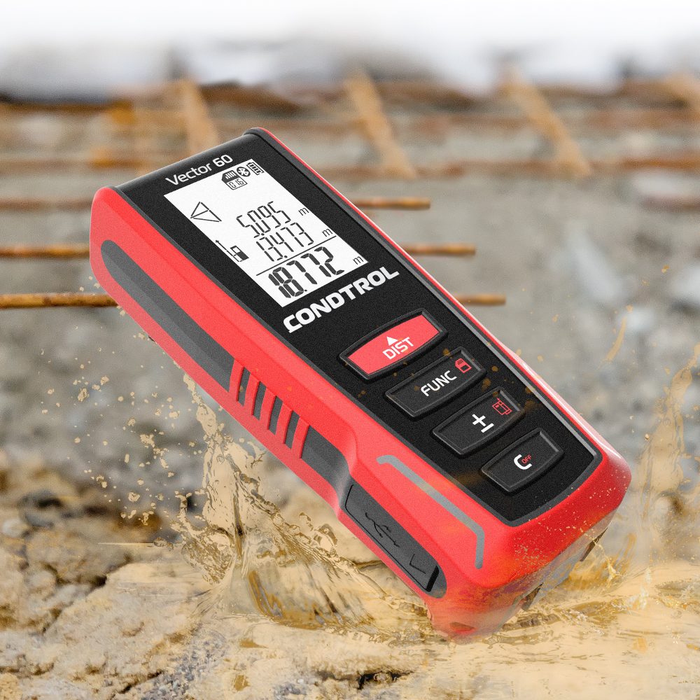 Лазерная рулетка CONDTROL Vector 60 пригодится строителям, отделочникам, монтажникам, замерщикам окон, установщикам мебели, домашним мастерам. С помощью дальномера вы легко сможете рассчитать необходимое количество отделочных материалов для ремонта, измерить площадь квартиры или дома при покупке жилья и т. д.