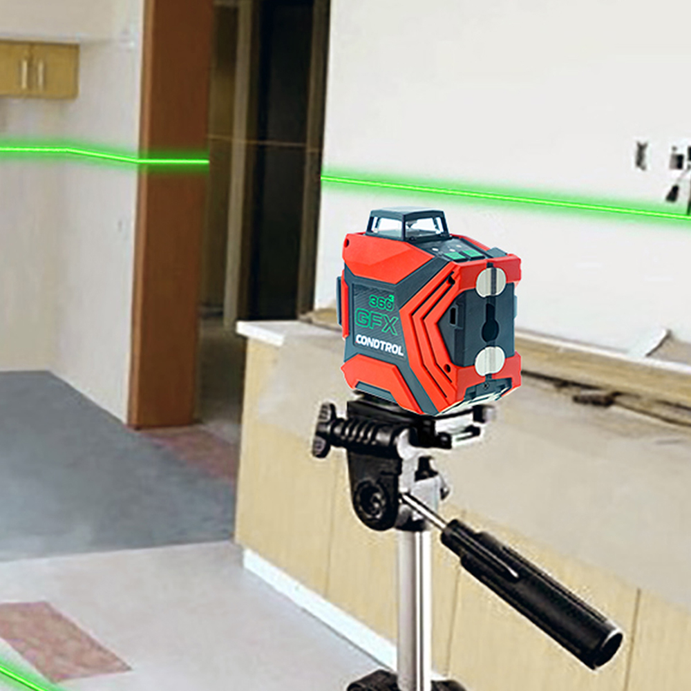 Плоскости с разверткой в 360 градусов избавляют от необходимости вращать и переставлять прибор при проведении разметки, дают возможность точно выверять прямые углы, прокладывать коммуникации, работать из одной точки установки нивелира по всему периметру помещения. Если купить дополнительно к лазерному нивелиру штатив, работать с замерами будет еще удобнее.