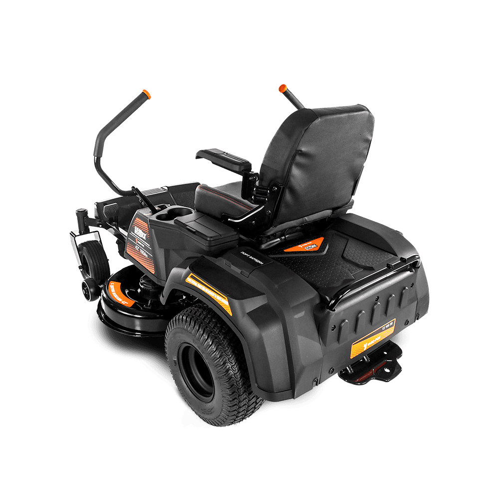 Райдер YARD FOX TZ 106 SB поддерживает технологию ZERO-TURN, что означает нулевой радиус разворота. Это достигается благодаря независимому управлению приводом каждого заднего колеса, позволяя райдеру разворачиваться на месте.