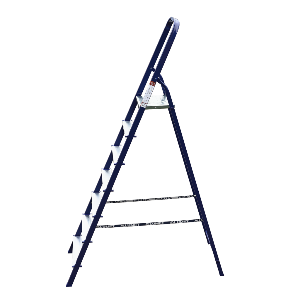 Тетивы стремянки стальной выполнены из прочного стального профиля, защищенного от коррозии эпоксидной порошковой эмалью. Задняя и передняя нога соединены между собой. Рабочая площадка выполнена из оцинкованной стали. Ступени имеют рифленую поверхность и изготовлены из высокопрочного алюминиевого профиля. Башмаки изготовлены из высокопрочного пластика. Стремянка в рабочем положении надежно фиксируется рабочей площадкой, а начиная с пятиступенчатой и выше. страховочными ремнями. Количество ступеней от 3-х до 10-и. Стремянка стальная серии М предназначена для проведения различных видов работ на высоте до 4 м как в быту, так и на производстве.