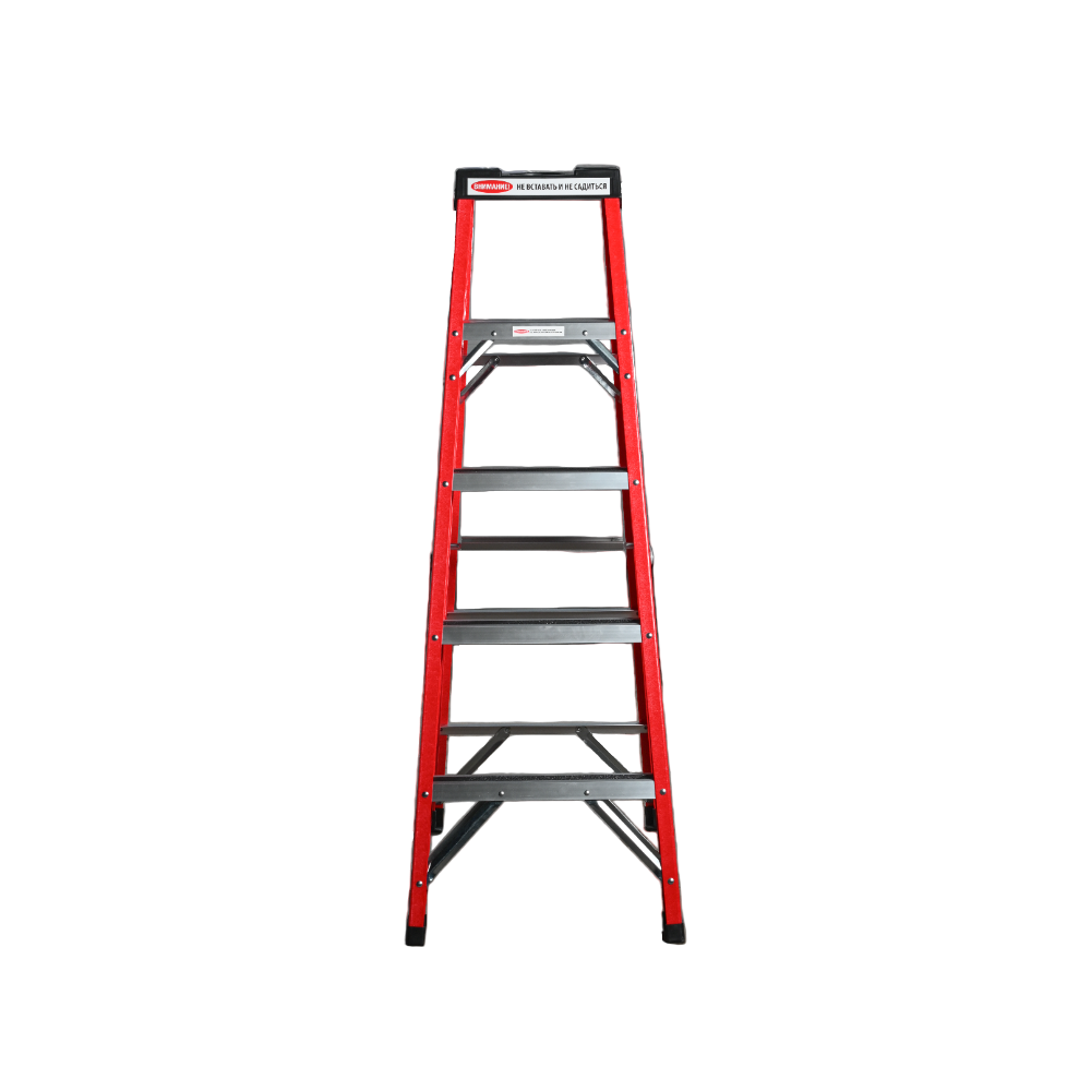 Тетивы выполнены из П-образного профиля (из стеклопластика), ступени стремянки - из высокопрочного алюминиевого профиля. Ступени имеют противоскользящую рифленую поверхность (по центру проходит наждачная лента).