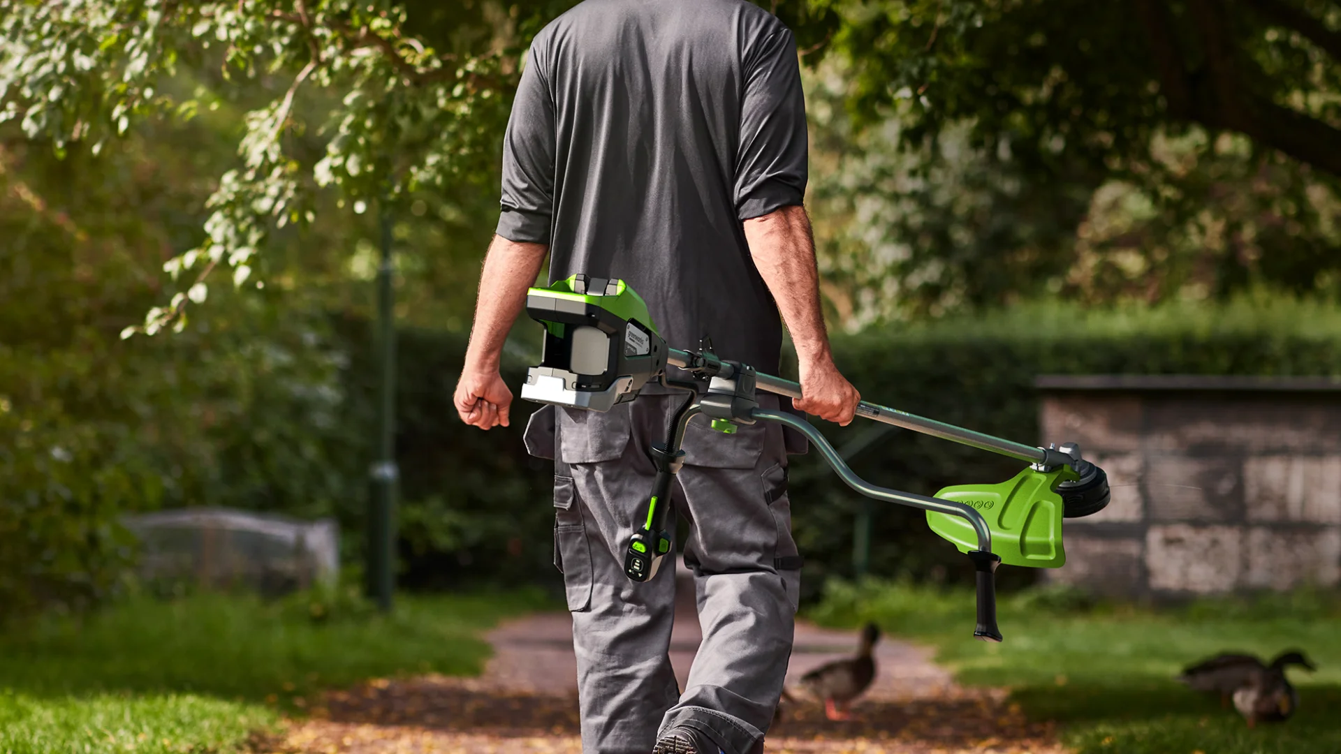Велосипедная рукоятка триммера и, входящий в комплект ранцевый ремень, оптимальны для продолжительной эффективной работы на больших площадях.