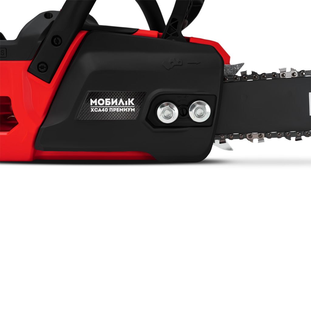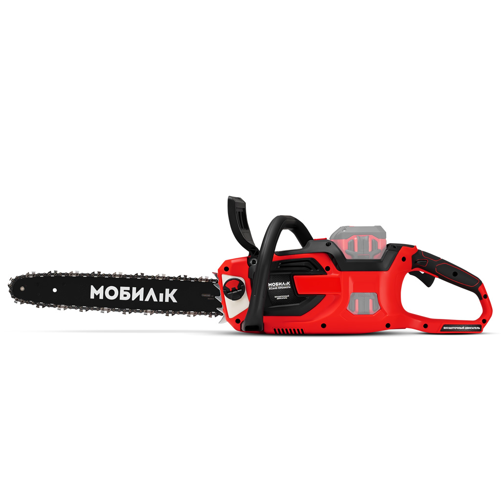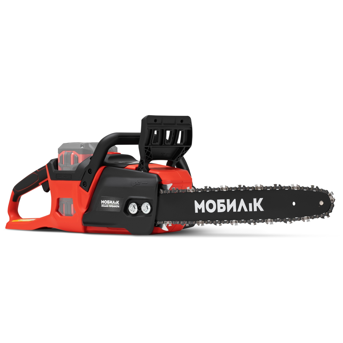 Пила цепная аккумуляторная МОБИЛ К XCA40 ПРЕМИУМ 60 Вольт, арт. MBK0032700 с бесщеточным двигателем найдет применение в большом загородном хозяйстве. Мощность двигателя составляет 2800 Вт (3,8 л. с.). По своей мощности пила не уступает профессиональным бензиновым аналогам. При этом она существенно проще в эксплуатации, запускается нажатием кнопки, отличается низким уровнем шума и вибраций, двигатель не нуждается в обслуживании. Поставляется в комплекте с пильной гарнитурой OREGON длиной 40 см и пазом 1,1 мм. Высокая скорость движения цепи - 22 м/с обеспечивает высокую производительность. Безопасность обеспечивается инерционным тормозом, стальным зубчатым упором, стальным цереуловителем. Масса пилы без аккумулятора: 3,35 кг. шаг ведущей звездочки - 3/8".