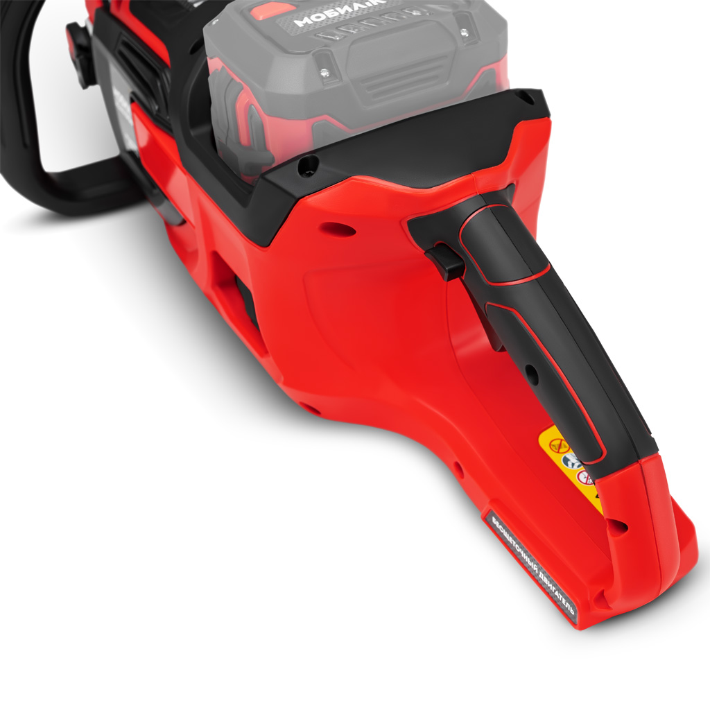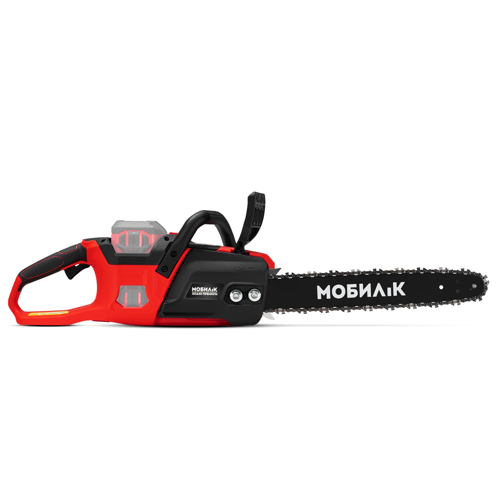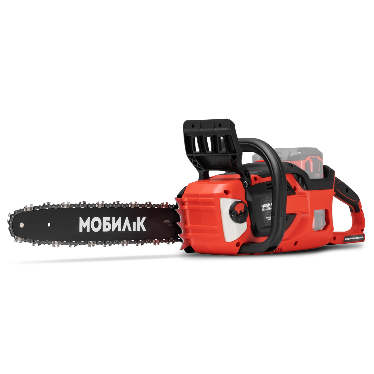Пила цепная аккумуляторная МОБИЛ К XCA40 ПРЕМИУМ 60 Вольт, арт. MBK0032700 с бесщеточным двигателем найдет применение в большом загородном хозяйстве. Мощность двигателя составляет 2800 Вт (3,8 л. с.). По своей мощности пила не уступает профессиональным бензиновым аналогам. При этом она существенно проще в эксплуатации, запускается нажатием кнопки, отличается низким уровнем шума и вибраций, двигатель не нуждается в обслуживании. Поставляется в комплекте с пильной гарнитурой OREGON длиной 40 см и пазом 1,1 мм. Высокая скорость движения цепи - 22 м/с обеспечивает высокую производительность. Безопасность обеспечивается инерционным тормозом, стальным зубчатым упором, стальным цереуловителем. Масса пилы без аккумулятора: 3,35 кг. шаг ведущей звездочки - 3/8".