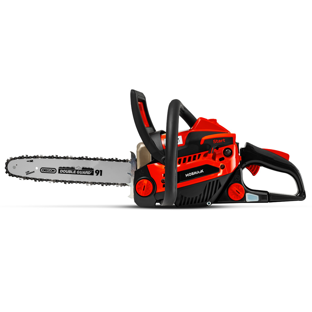 На бензопилы МОБИЛ К ПРЕМИУМ устанавливается пильная гарнитура от всемирно известной компании OREGON, которая узко специализируется на цепях, шинах и ведущих звездочках. Цепи OREGON дольше остаются острыми и меньше растягиваются, а шины гораздо медленнее изнашиваются.